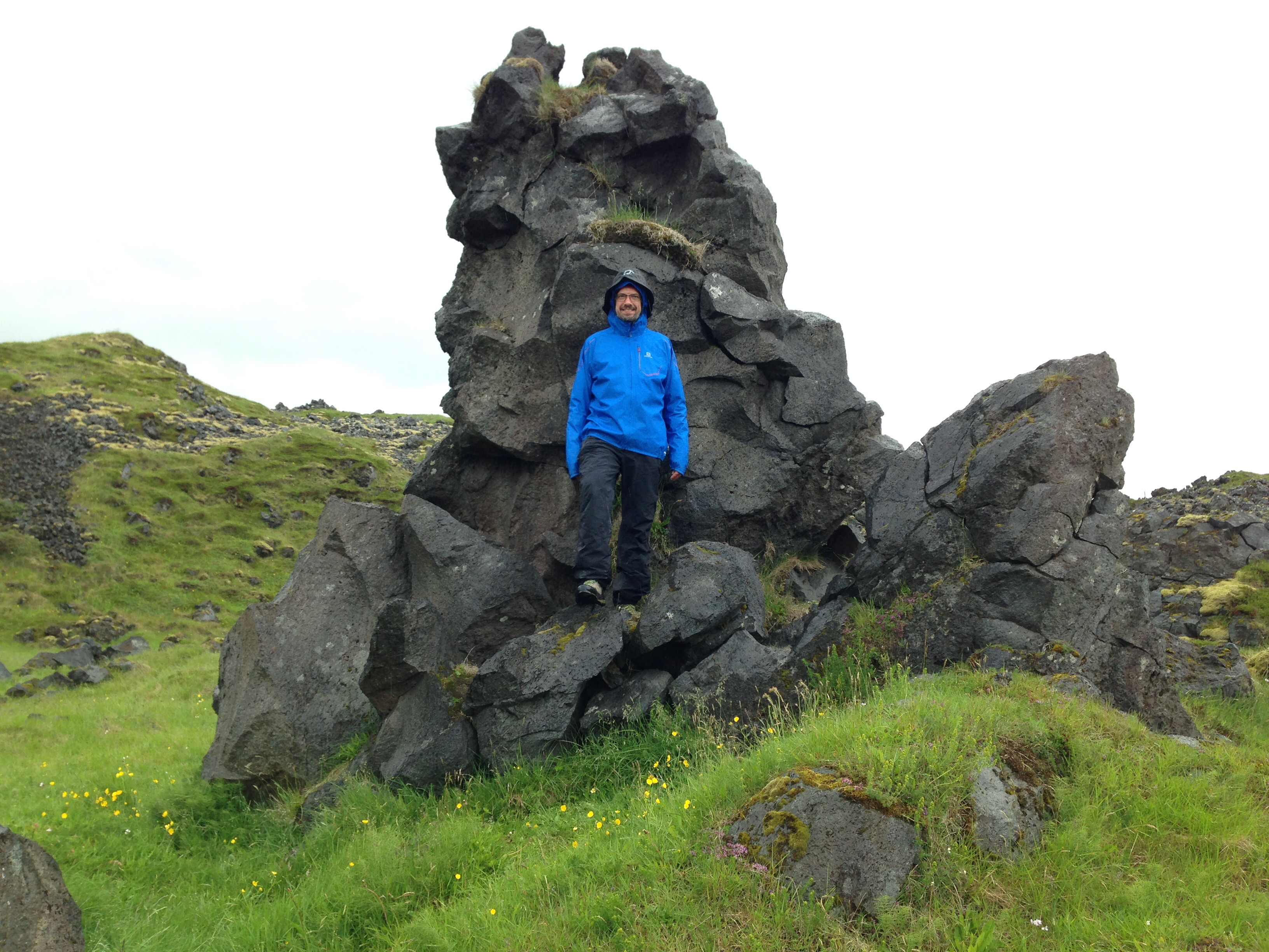 Így aztán továbbhajtottunk, Arnarstapi helységbe, ahol egy rövidke túrát lehetett tenni. Itt a tengerparton mindenféle gyönyörű sziklaformációk vannak bazaltból. Kb 2x 45 perc volt csak a túra, de az odafele út igencsak szeles és esős volt. Minket nem lehet visszariasztani, beöltöztünk, mint a bálnavadászok és legyőztük az elemeket 🙂