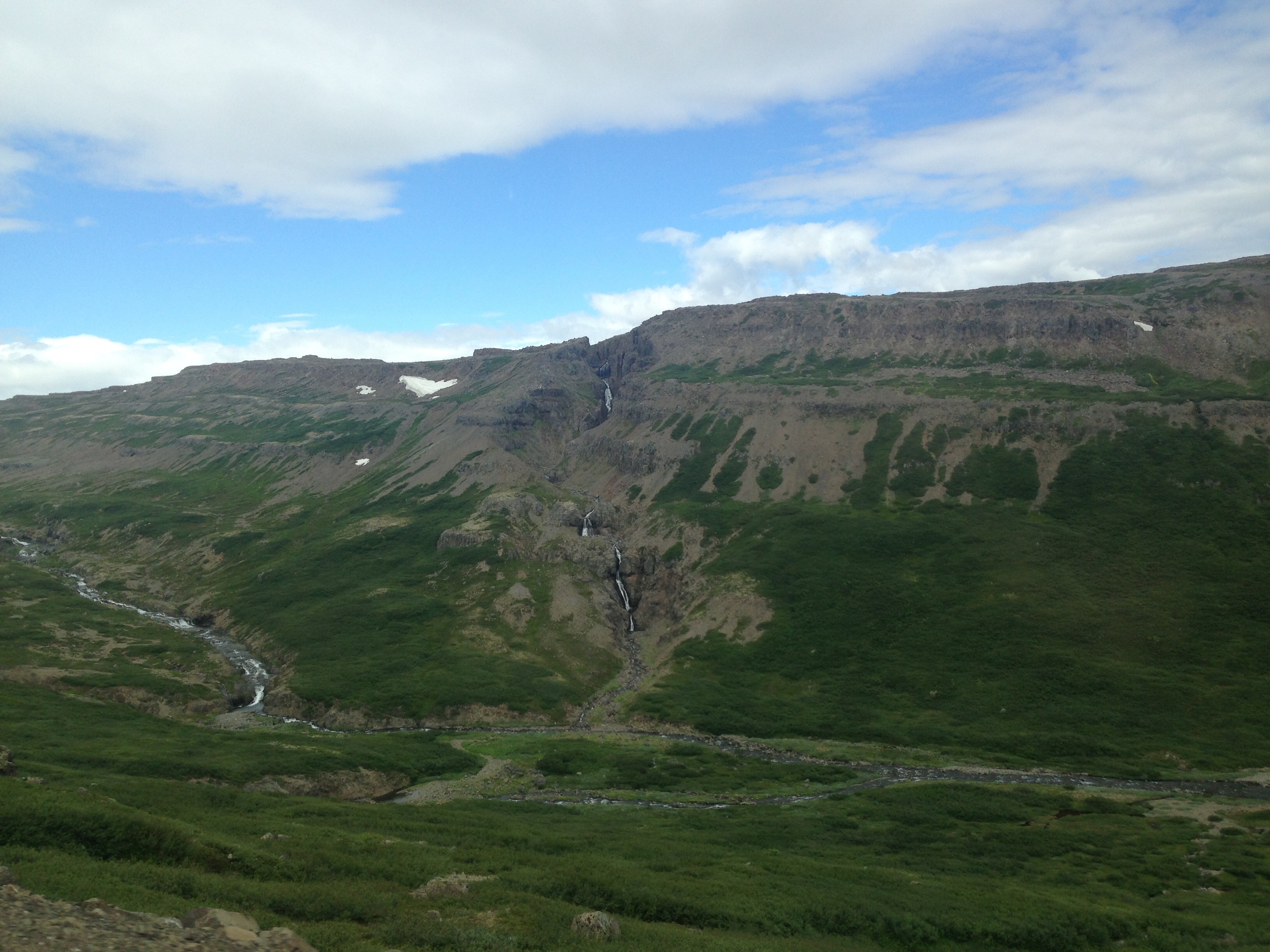 Utána indultunk is tovább, még majdnem 5 óra út áll előttünk a Westfjords-ra. Ugyanis itt minden fjordot majdnem be kell utazni, nincsenek olyan jópofa hidak vagy tenger alatti alagutak, mint Norvégiában. Viszont vannak kicsit ramatyabb földutak, mint Namíbiában – az igaz, itt jóval többet is esik meg fagy. Na azok az utak néha a lelket is kirázták belőlünk ebben a Suzukiban, meg mindig attól tartunk, egyszer csak kinyílik a hátsó ajtónk útközben, mert annyira zörög. De szerencsére még minden egyben van. Útközben jó pár vízesést lehet látni, egy nagyobbacskánál meg is álltunk.