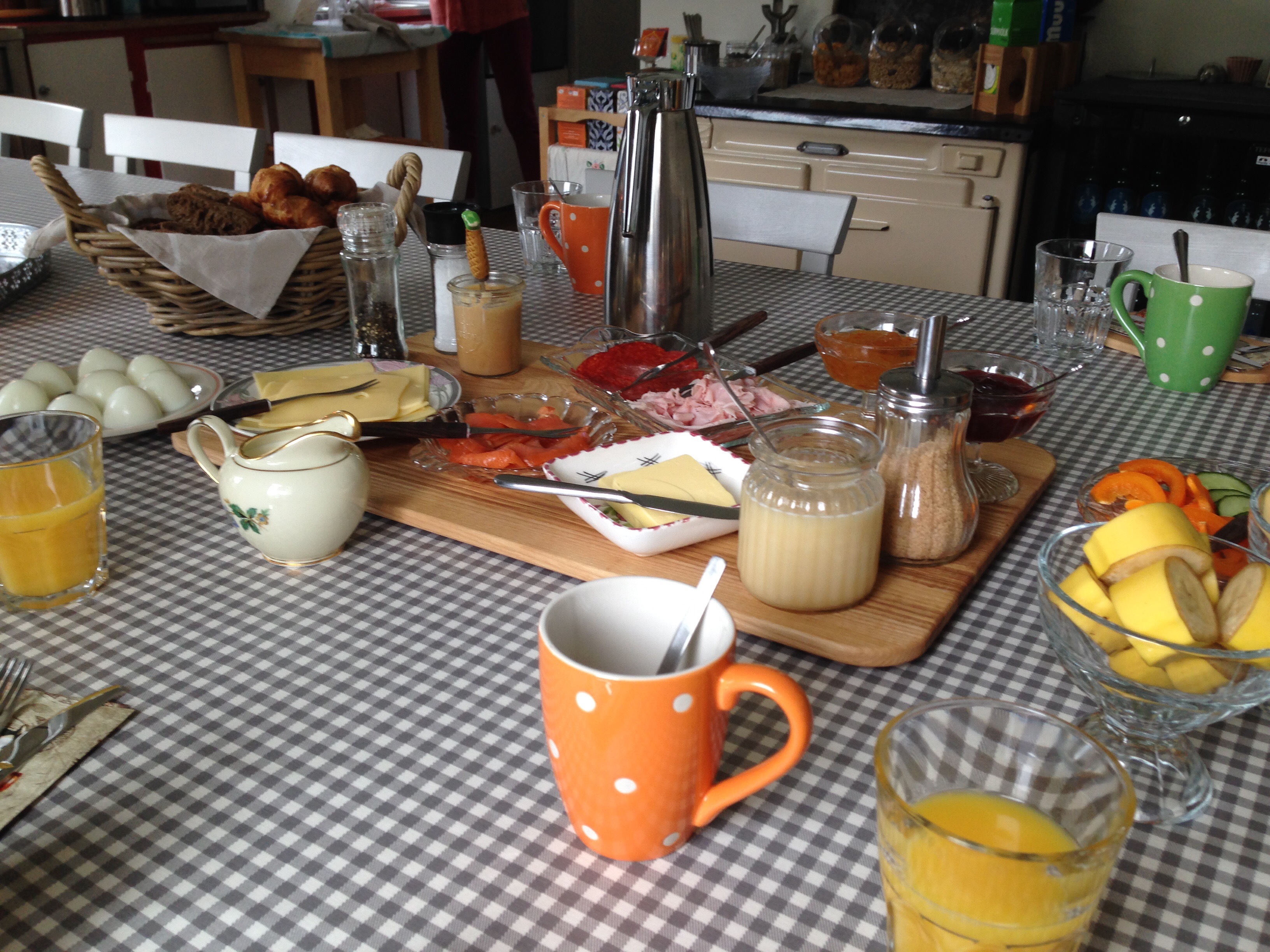 Reggeli a konyhában, igen gusztusosan tálalva. Az étvágyat max a két német rontja, de szerencsére ők ma elutaznak.