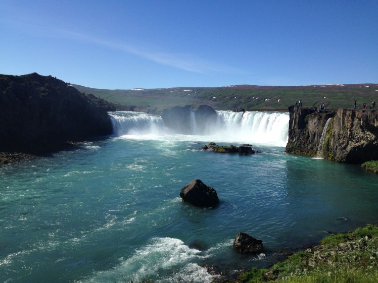 Ma először a Goðafoss vízesést (az istenek vízesése) nézzük meg, majd egy túra a Mývatn tó környékén. Ez egy geotermál régió, ha lesz időnk, ma a fürdőbe is megyünk, ha nem, akkor majd holnap. Utána szerencsére már nincs messze a mai szállásunk Húsavikban.