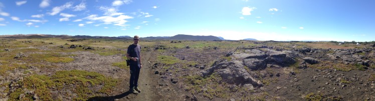 Myvatn klassz volt. Itt egy majdnem 4 órás túrát csináltunk, egy kráterhez, fel, egy lávamezőhöz, majd vissza. A tömeg mindezt autóval közelítette meg, úgyhogy útközben nyugtunk volt. És csodás idő, levettem a nadrág lábait 🙂