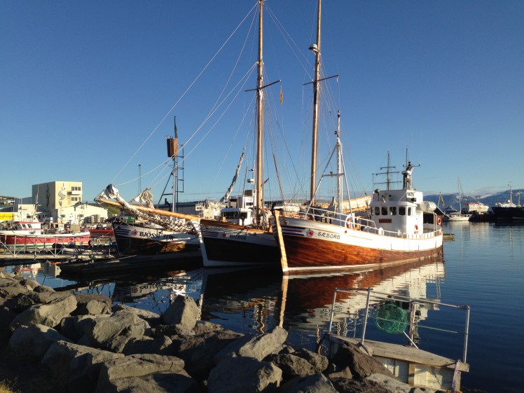 Húsavíkba már csak 40 perc volt az út. Hotel OK. Vacsora a Gamli Baukur étteremben, természetesen hal, megint nagyon jó volt. Még mindig ezerrel süt a nap, a kikötőben sétáltunk kicsit és most még egy sört is megittunk egy teraszon. Szuper nap volt.