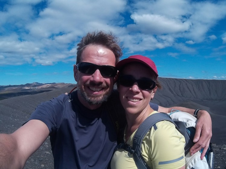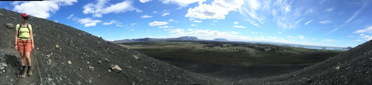 Beim Goðafoss waren wir zurück im touristischen Mainstream. Nach der Ruhe der letzten Tage definitiv gewöhnungsbedürftig. Sind dann von dort relativ bald weiter nach Reykjahlið und haben dann die geplante Wanderung gemacht. Flach ging es durch kleine Birkenwäldchen und Lavafelder zum Hverfjall, einem Vulkankrater. Mývatn liegt direkt am Mittelatlantischem Rücken und das ist auch sichtbar, denn es gibt Spalten wo man sieht wie die Amerikanische und die Eurasische Platte auseinanderdriften.