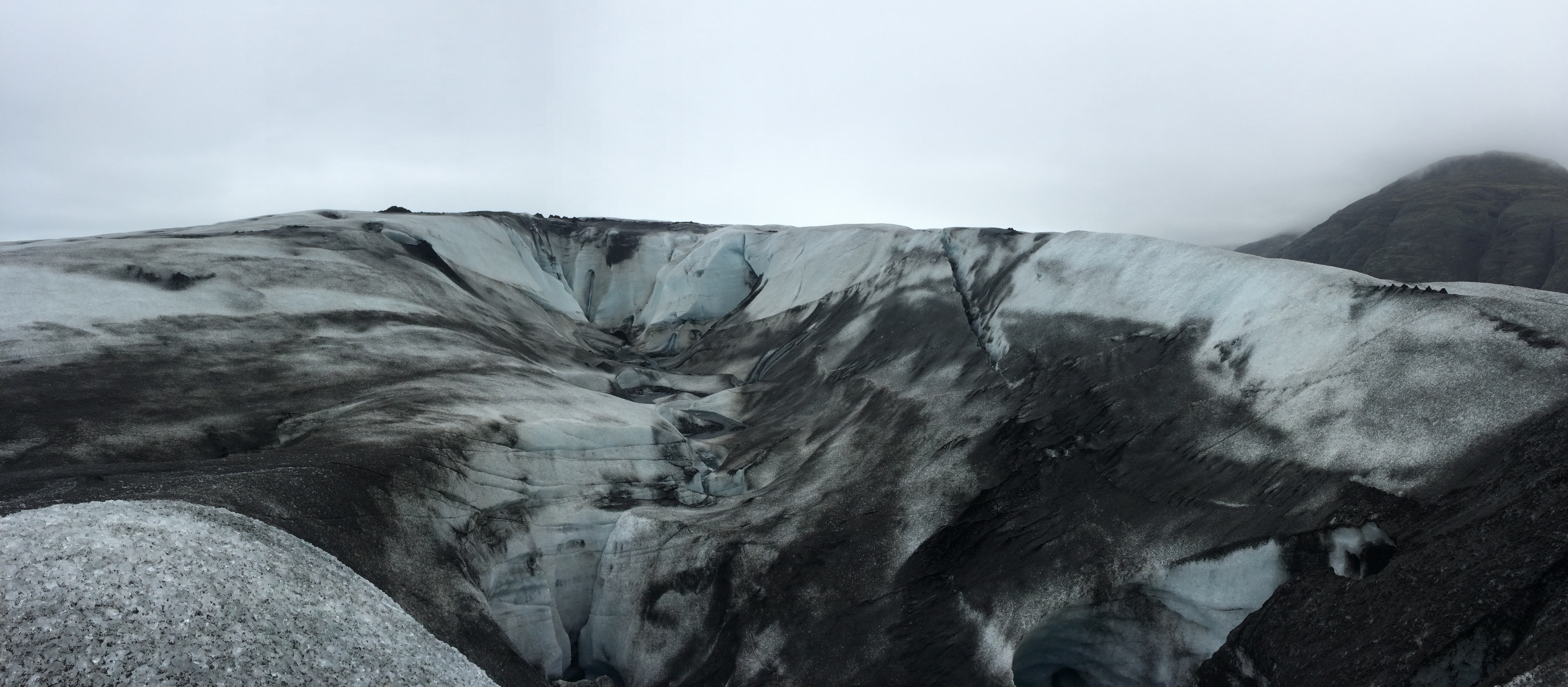 Am Anfang ist der Gletscher schwarz von Vulkanasche und je weiter man noch oben geht desto heller wird er.