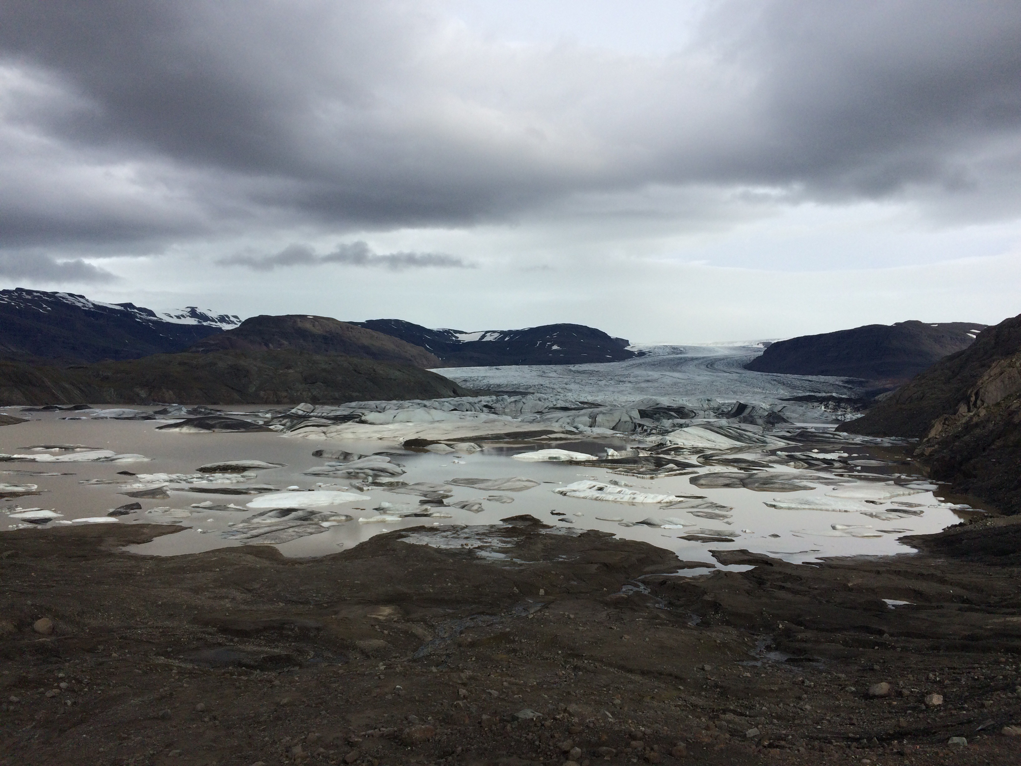 Heute bin ich näher an den Gletscher ran gefahren, um bis zum Rand zu kommen. Und ich hab’s geschafft.Mit Gegenwind und schwer zu laufender Straße.