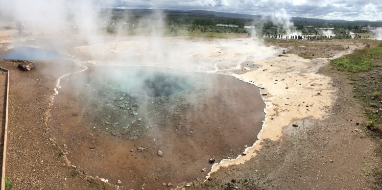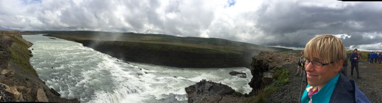 Erstaunlicherweise hatte wir Glück mit dem Wetter und wir sind den ganzen Tag trocken geblieben und hatten dann sogar Sonne. Zuerst zum Gullfoss, wo uns die Touristenmassen schon erwarteten. Alle sind gleich drauf: raus aus dem Auto, hin zur Sehenswürdigkeit, Fotos und dann wieder zurück. Wir sind dann noch ein bissi spaziert und dann zurück und weiter zum Geysir.