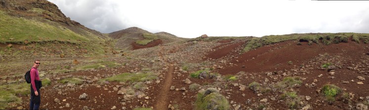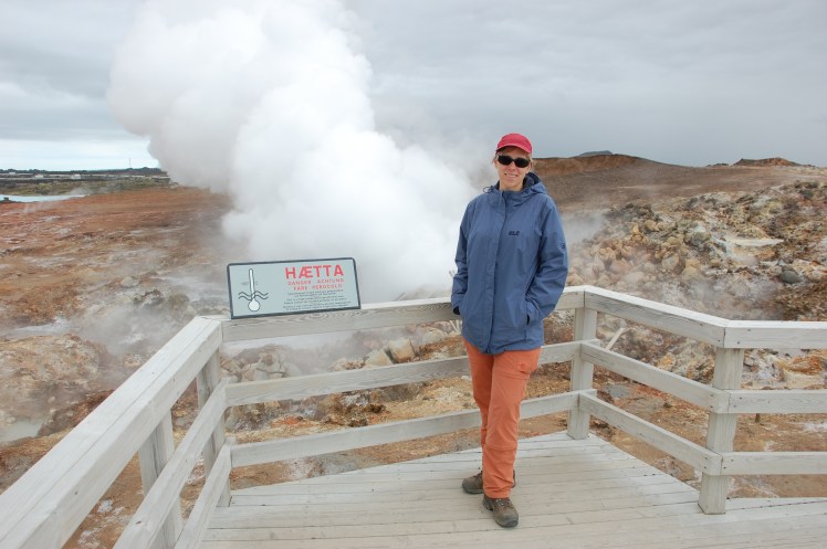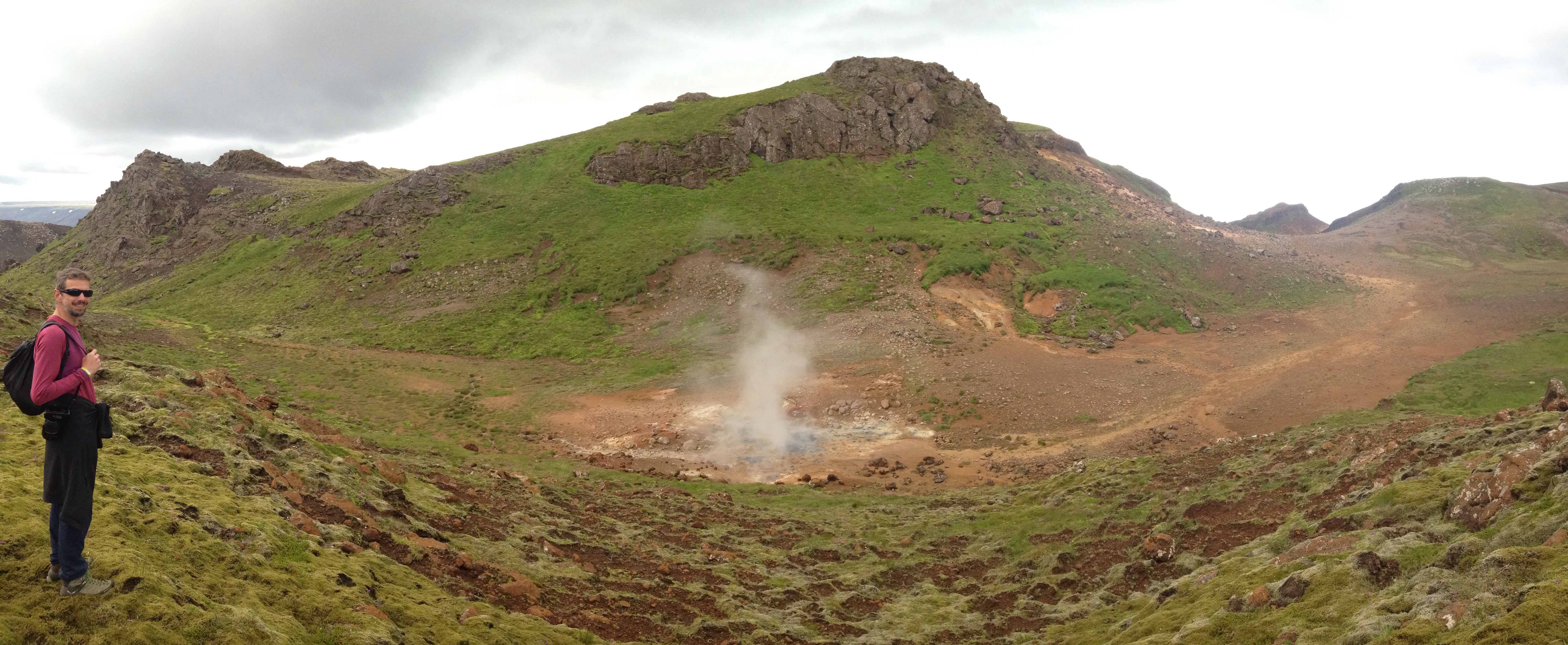 Na a 2 túrából végül csak egy lett, a hegymászás a Ketilsstígurra. Egy újabb geotermál régió, a parkoló mellett van jó pár gőzőlgő, forrongó sárlyukacska, meg a turisták. Mi innen el, fel a hegyre és a magányba. Meg a felhő alá 🙂 az út nagyon klassz volt, még egy gőzőlgő lyukat is felfedeztünk közben. Aztán visszafelé nem el kezdett esni az a fránya eső. Én még egyet seggre csúsztam búcsúzásképpen :).