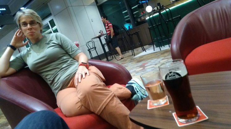 Der Tag neigt sich am Flughafen dem Ende zu. Sitzen noch in Bar und genießen Bier und Cider bevor es auf nach Darwin geht.