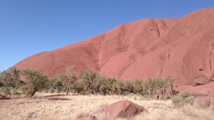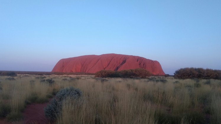 Die ersten Eindrücke vom Ayers Rock sind großartig. Alleine die Farben sind fantastisch, aber auch dieses einmalige monolithische Felsgebilde ist unglaublich.