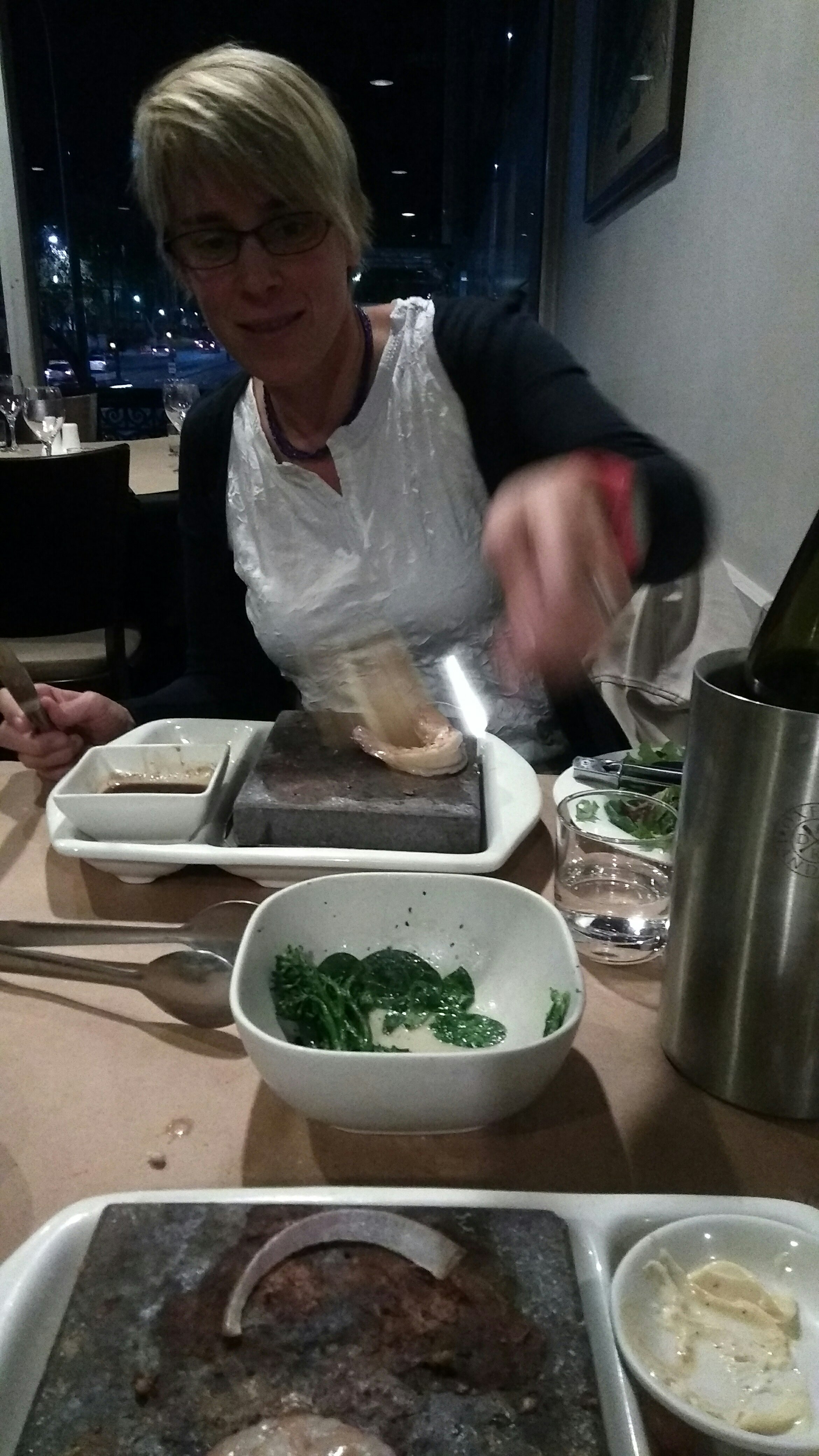 Gleich ein nettes Erlebnis: Stone Grill – selbst zu kochen. Gut war’s.
