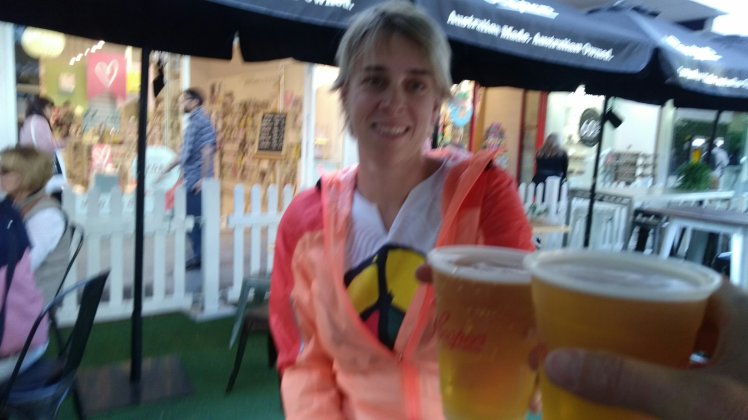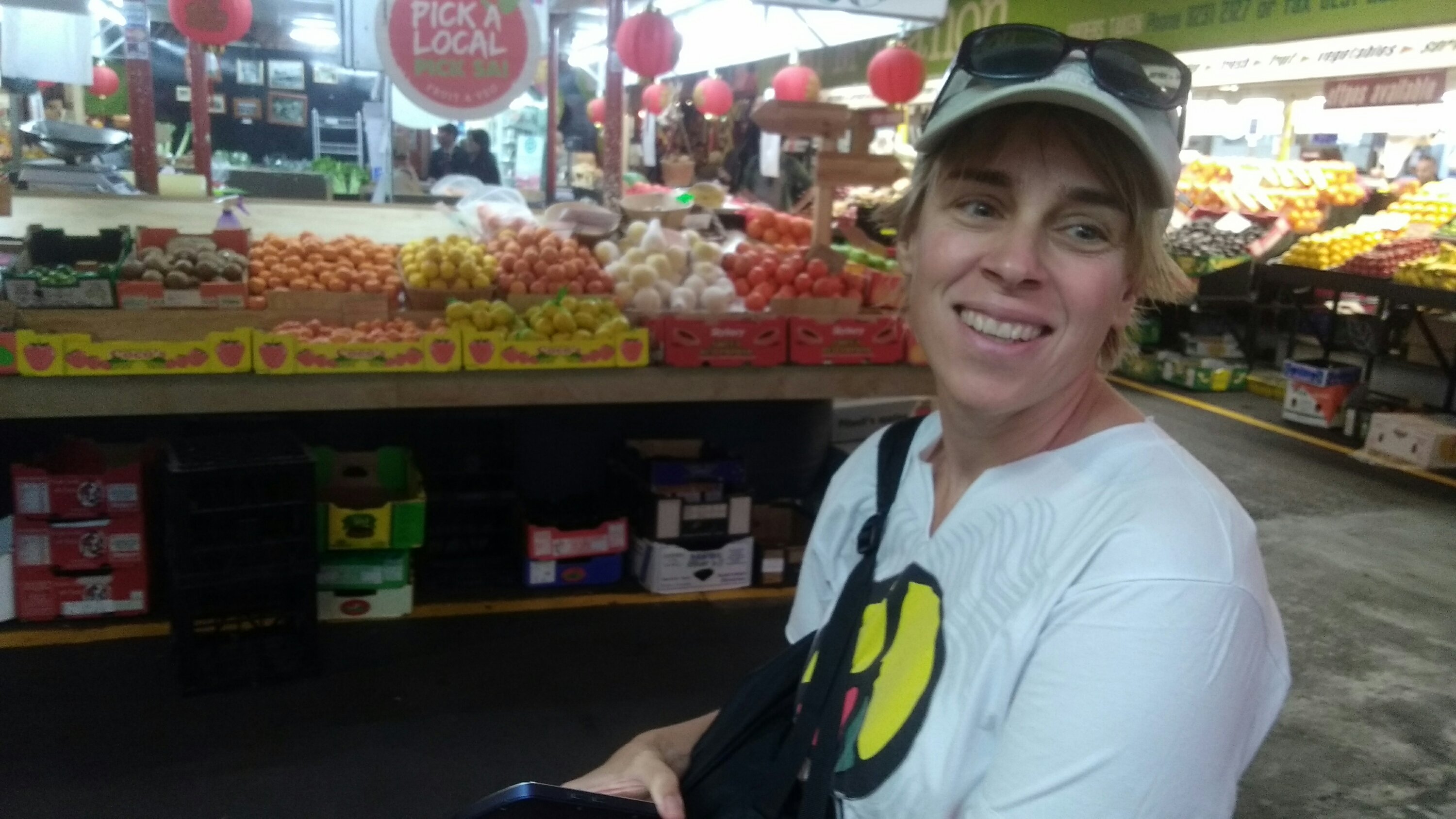 Haben uns durch den Markt gekostet. Käse, Wurst, Avocados, Oliven, Kuchen, Hendl …. Um wenig Geld viel Nahrung bekommen. Ein paar australische Spezialitäten wie geräuchertes Kanguru eingekauft.