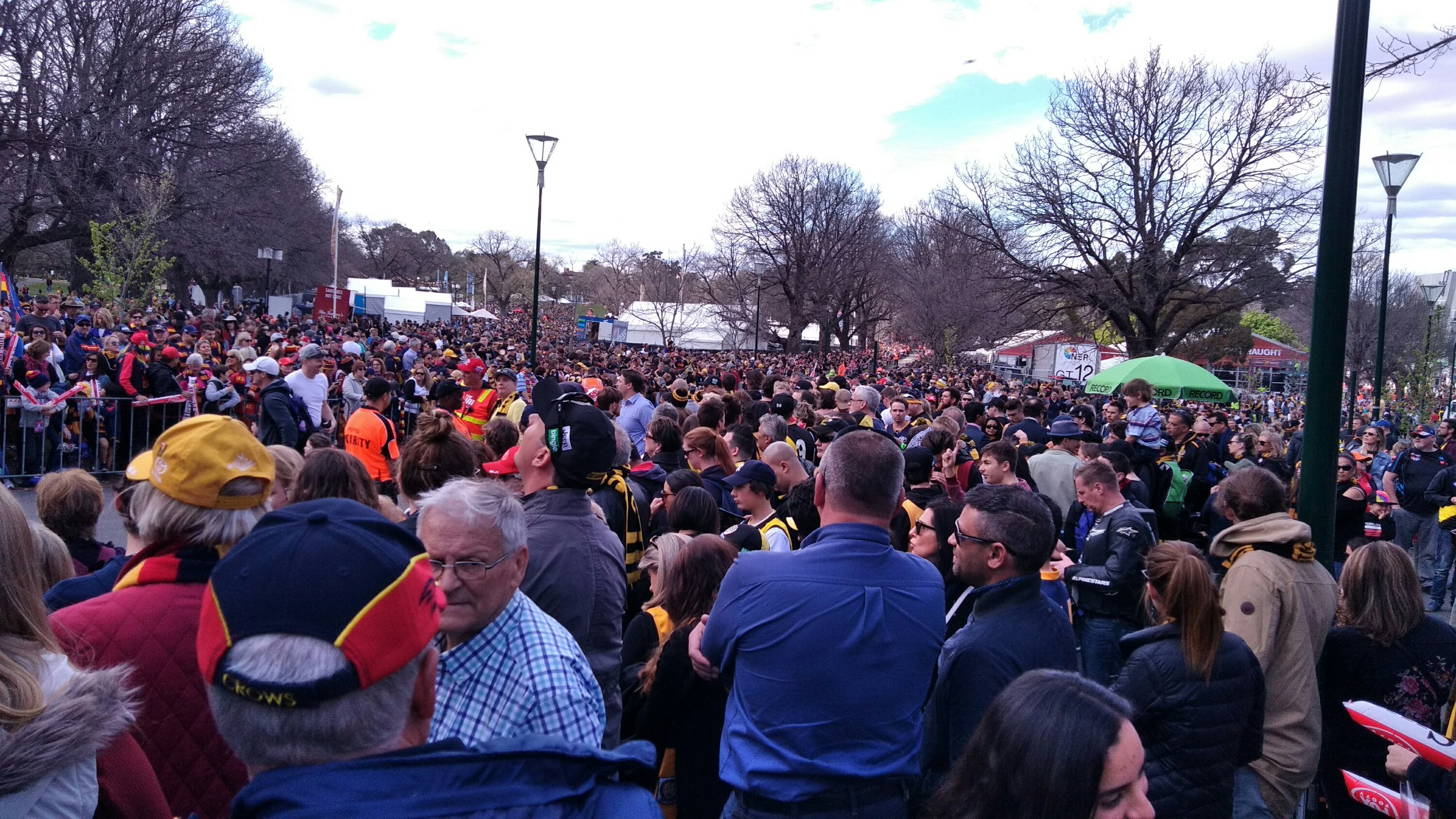 Die Parade war gut. Einige Spieler der Adelaide Crows und der Richmond Tigers sind auf Autos auch mitgekommen.