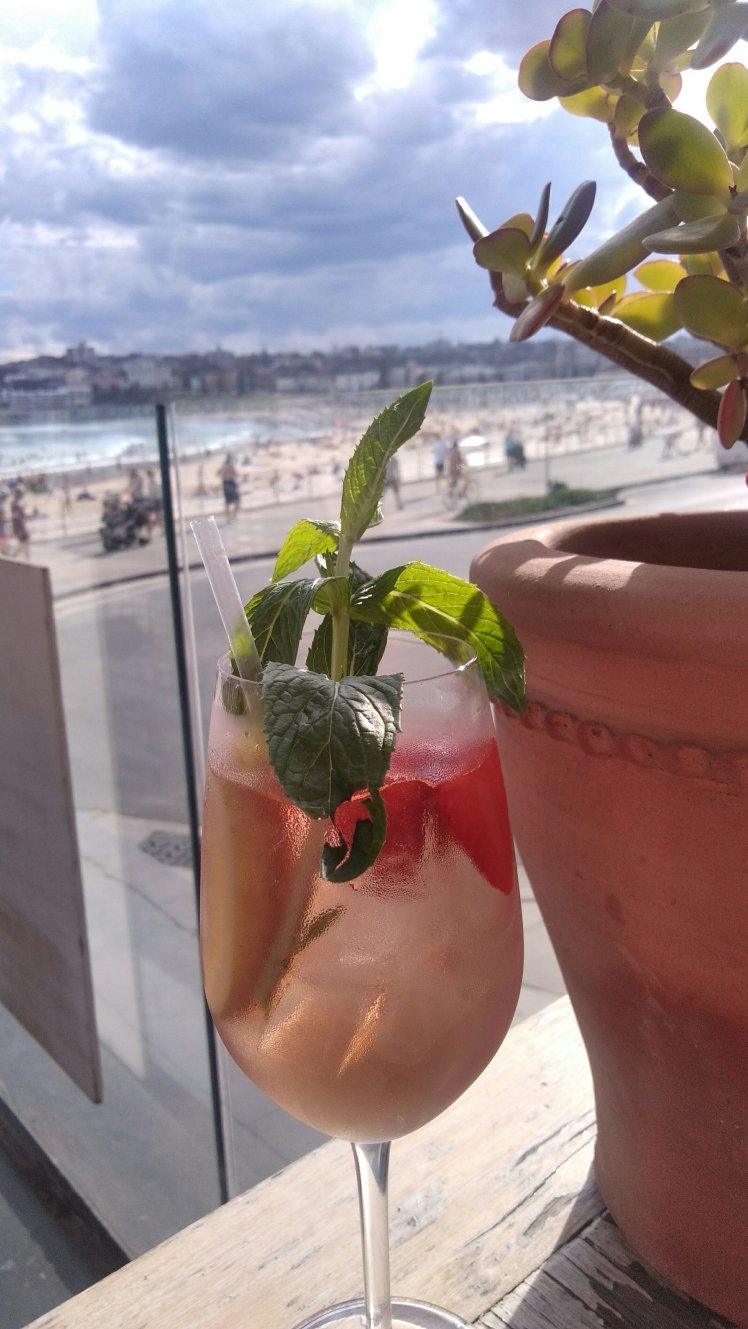 Ott átszálltunk egy buszra és irány Bondi Beach, a leghíresebb strand Sydneyben. Jó kilátással egy rosé spritzer 🙂 Úgy tűnik valami szuper cicababa helyi híresség ül mellettünk – vagy minket fotóz a paparazzo… 😉