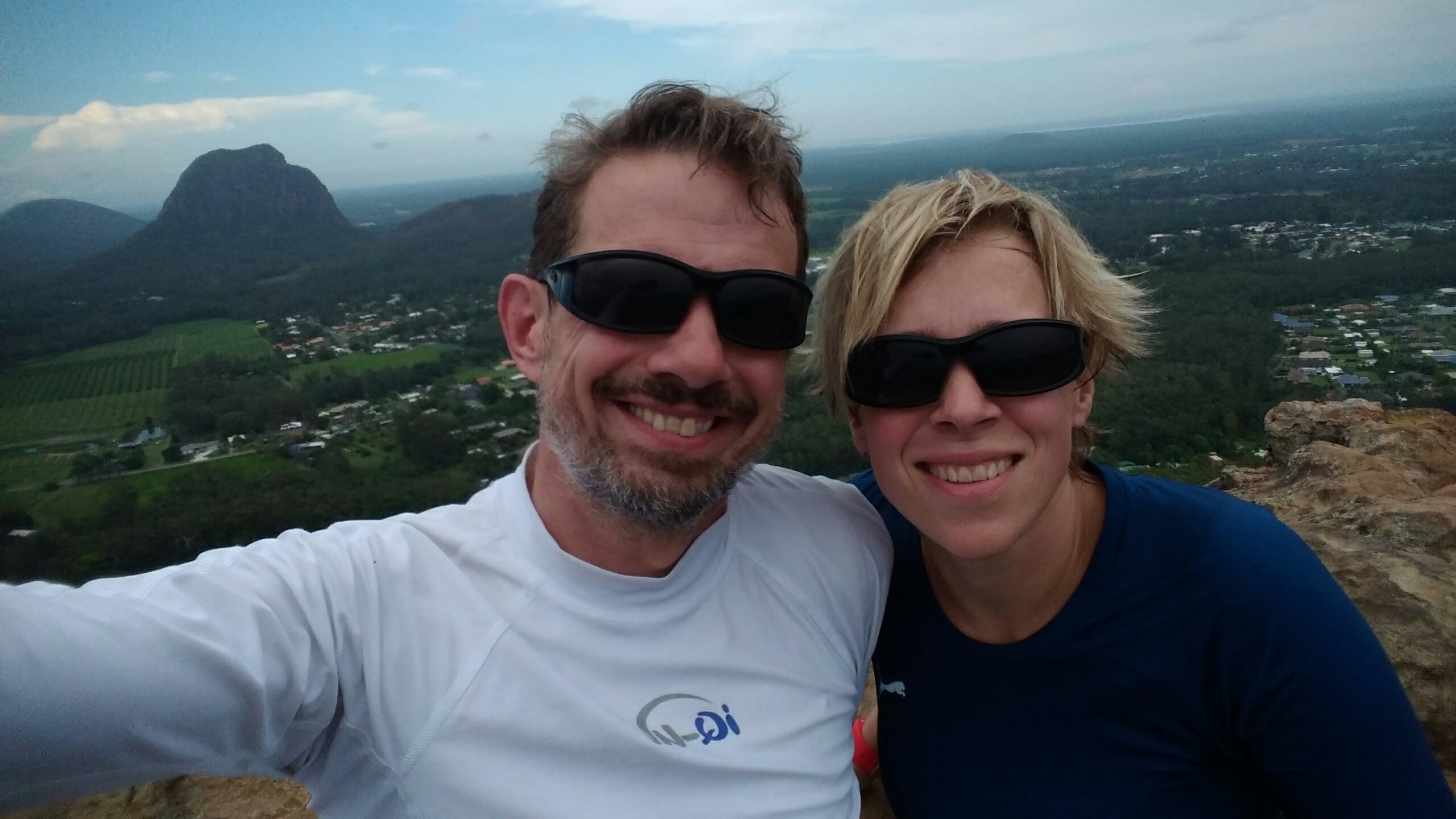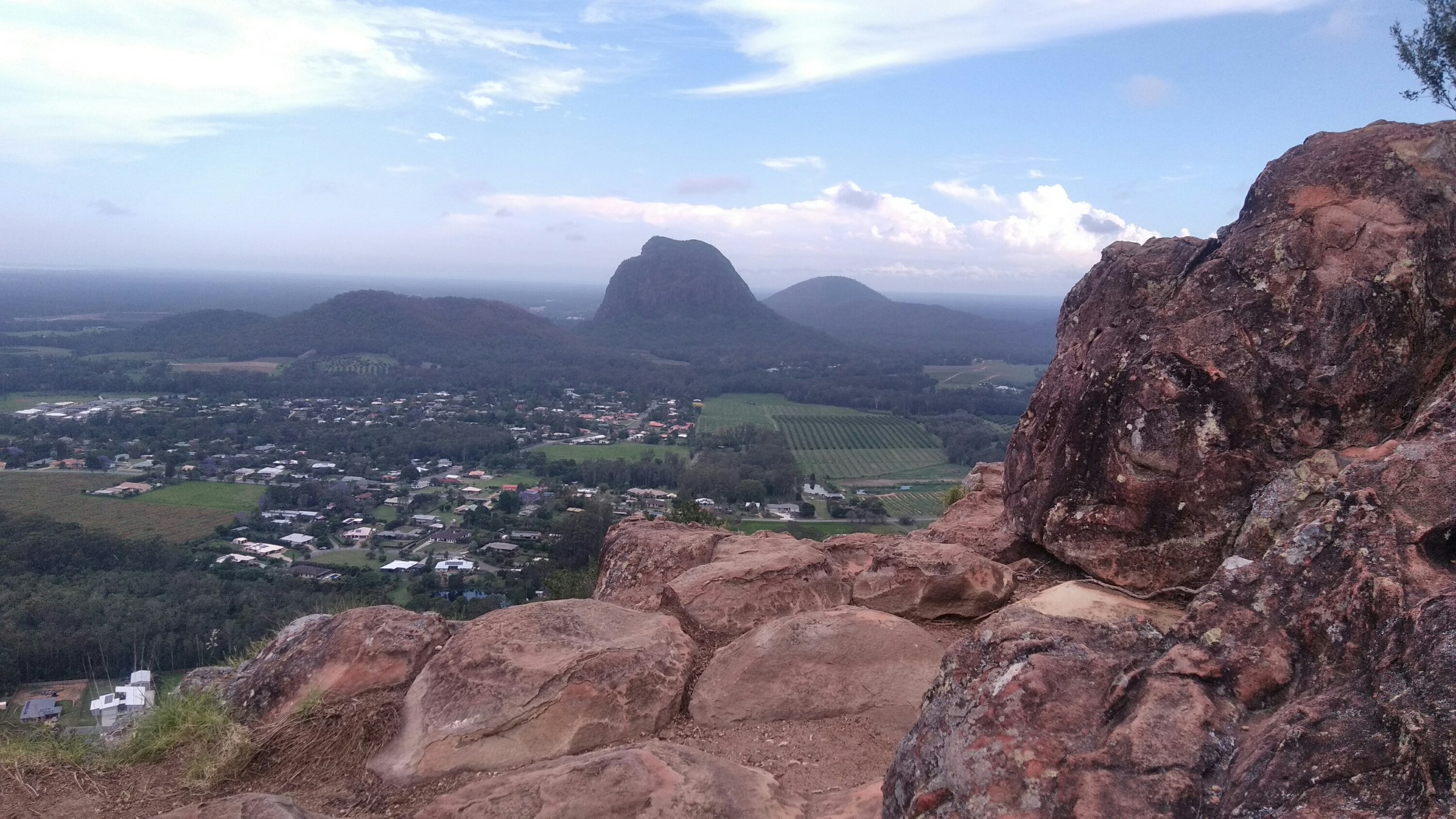 Der Flug nach Brisbane war kurz und unproblematisch. Auto haben wir auch schnell gehabt und jetzt sind wir schon am Gipfel von Mt Ngungun in den Glasshouse Moutains.
