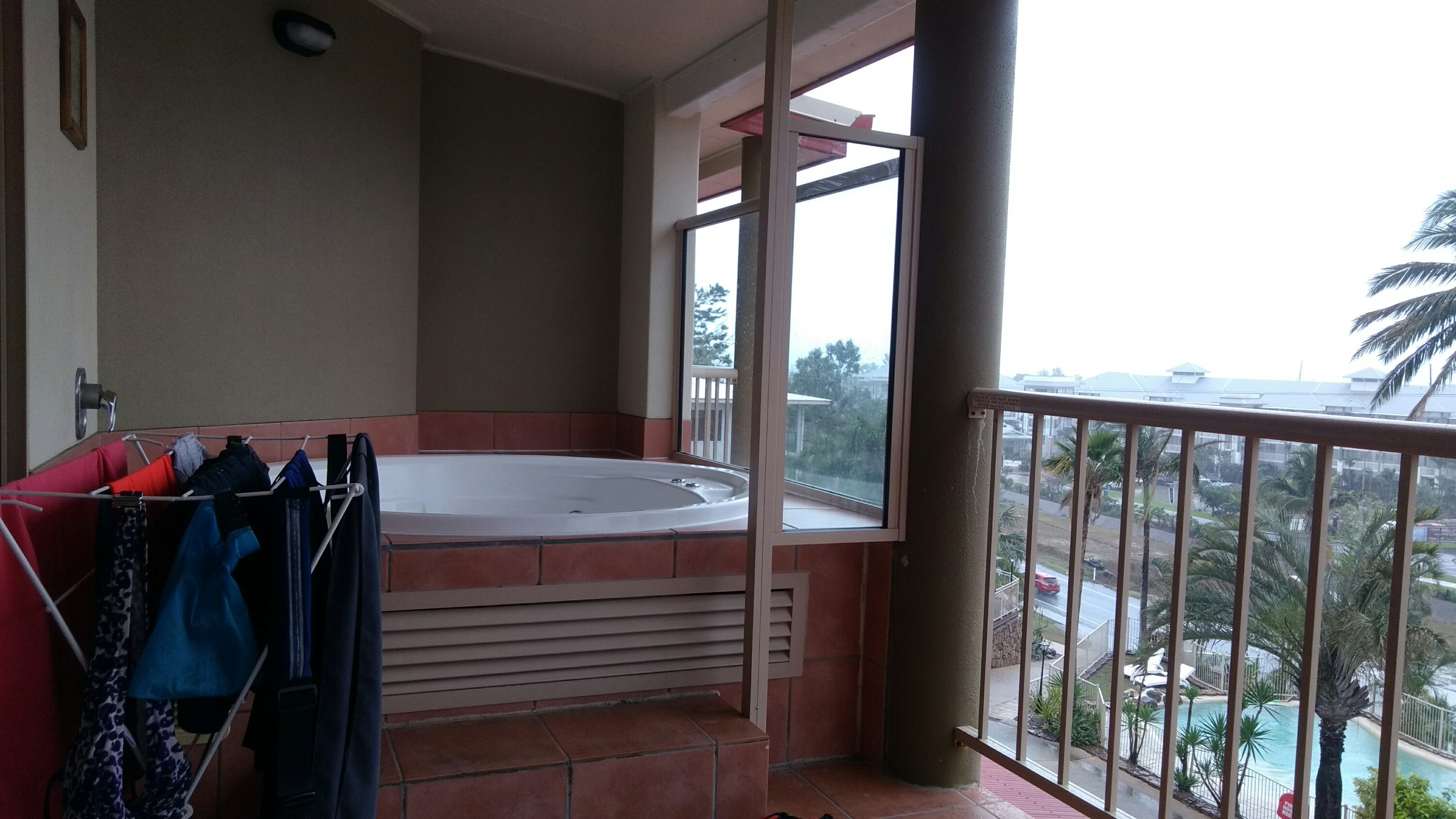 Ma leginkább a teraszunkat fogjuk kihasználni, ami szerencsére tetővel fedett, így az eső nem zavar. Hideg nincs. És van itt egy jacuzzi is, lehet azt is bevetjük. Ha lenne egy kis esőszünet, még sétálni is elmennénk. Mivel kocsink most még nincs, sokkal több opció nincs mára.