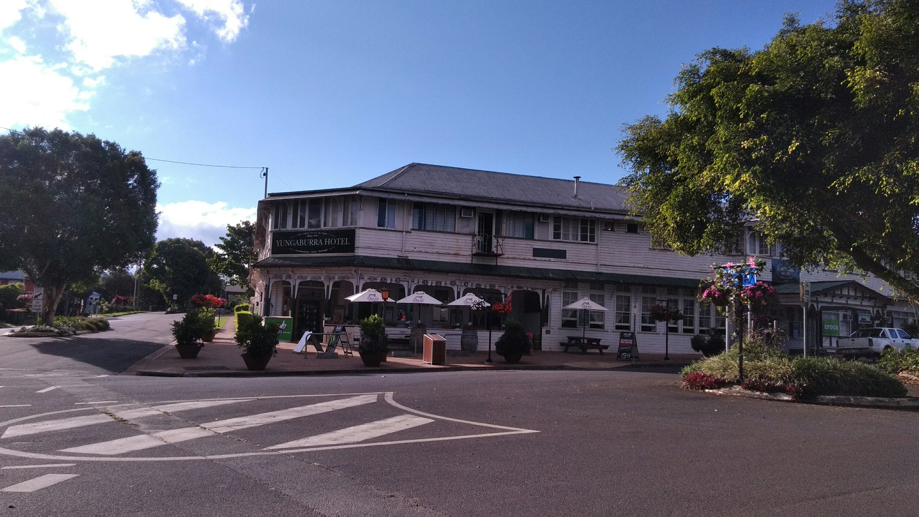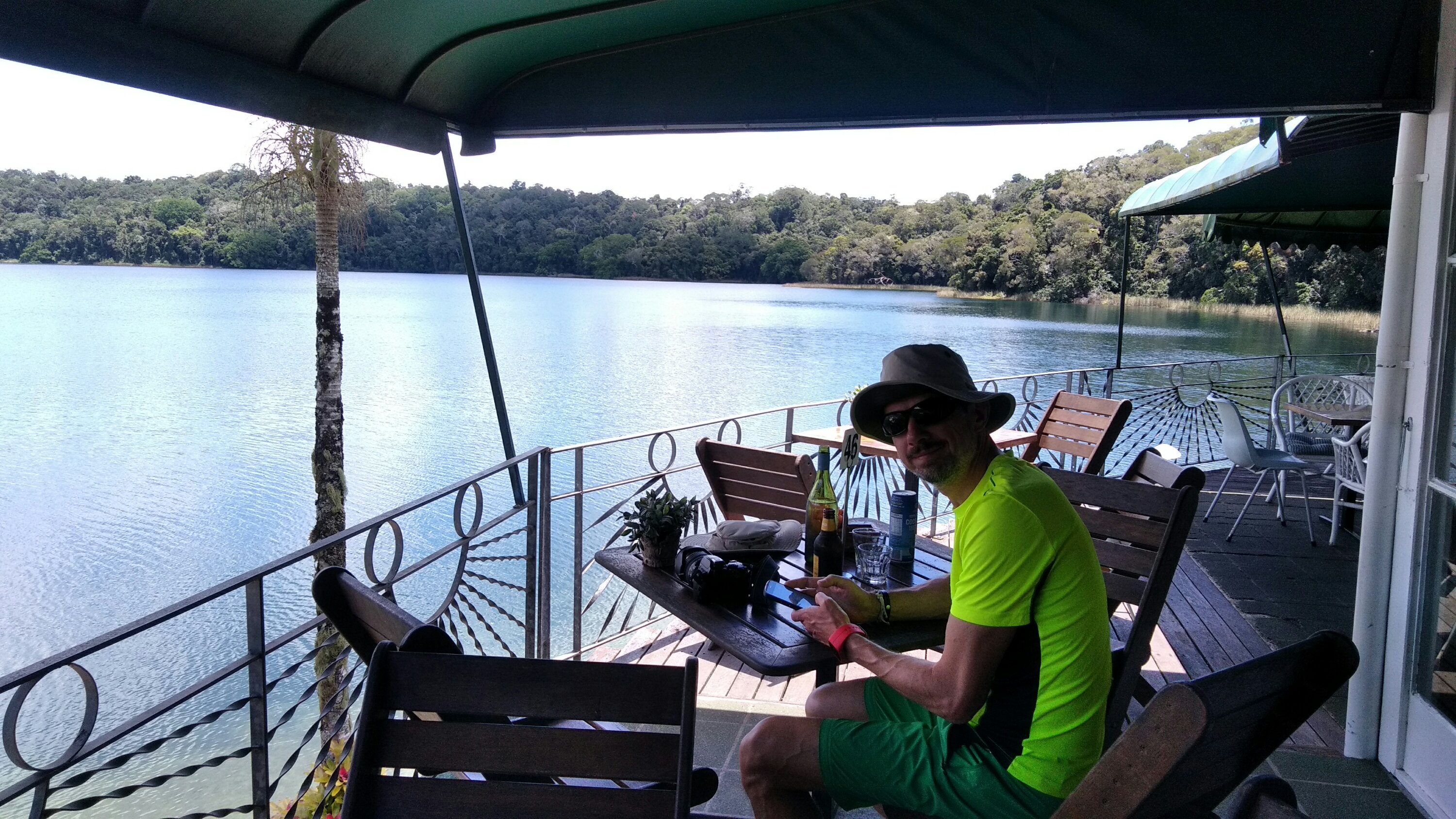 Most végigsétáltuk Yungaburra-t, nagyon aranyos kis település a mi szomszédságunkban, most beültünk egy italra az itteni hotelben.