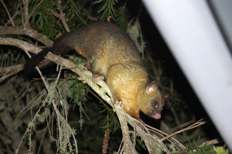 Am Abend hatten wir zuhause noch Besuch von einem Brushtail Possum. Ist über unser Dach auf den Baum geklettert. Mit unserem Scheinwerfer haben wir es dann entdecken können.