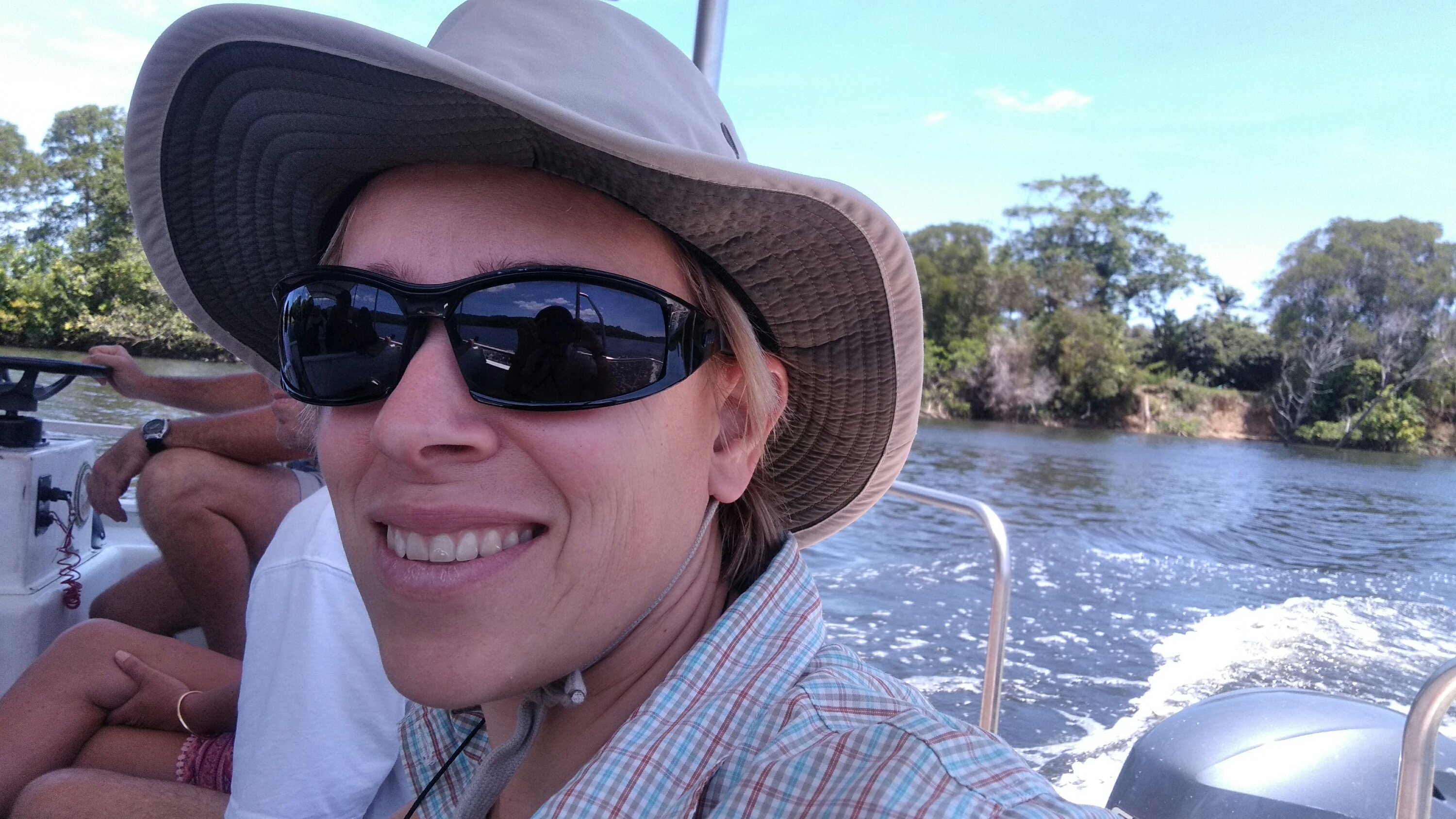 Mittlerweile sind wir auf dem Boot und haben auch schon ein Krokodil gesehen.
