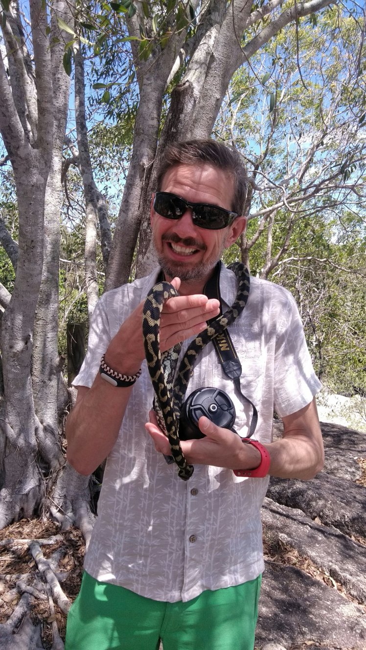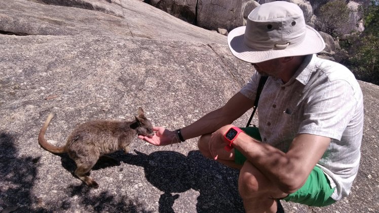 Itt ugyanis testközelben lehet megfigyelni, sőt etetni is a Rock wallaby-kat. Először is azonban egy kígyót raktunk a nyakunkba 🙂