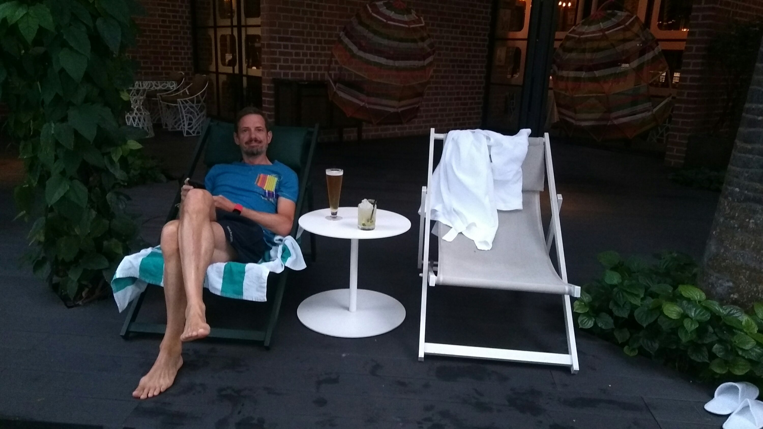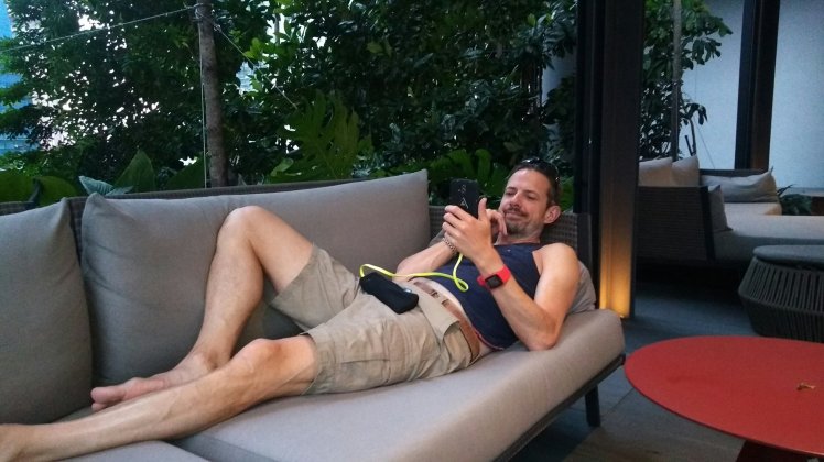 Első este jól bevacsoráztunk egy büfé étteremben és szokatlan későn feküdtünk le. Reggel aztán a fitness teremben kezdődött, majd most a tetőteraszon fürdőzünk.