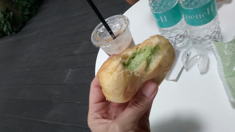 Délben kicsekkoltunk, leadtuk megőrzésre a csomagokat, majd itt a szemben lévő központban ettünk egy szendvicset meg egy fincsi japán krémes desszertet ebédre.