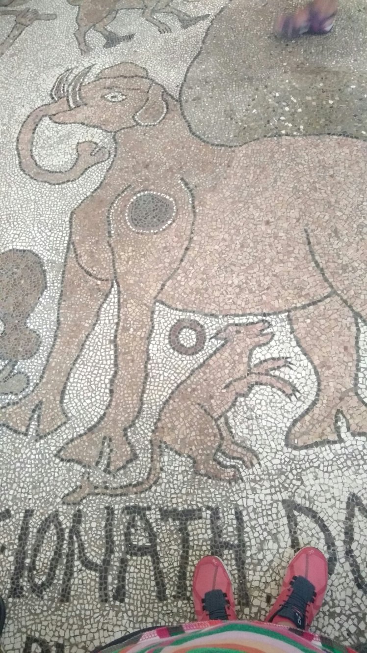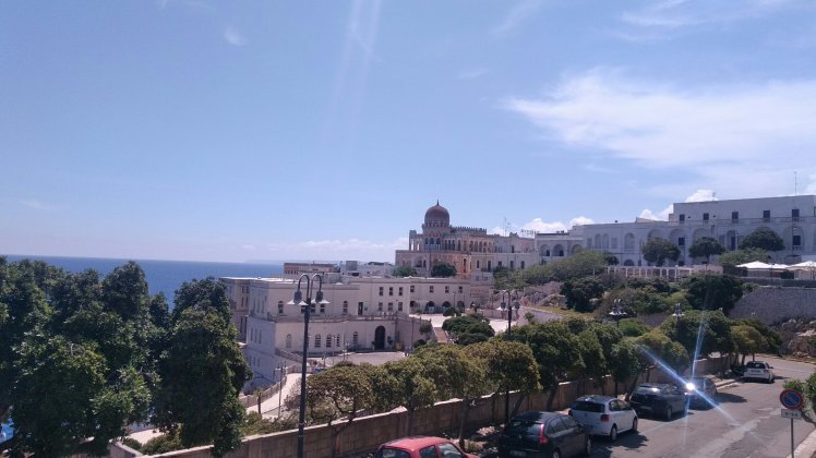 Otranto – üldögéltünk kicsit a strandon, majd megnéztük a katedrálist, ahol két fô nevezetesség van, egy az egész földet betakaró kicsit fura mozaik, meg a 813 lefejezett mártir kiállított csontjai.