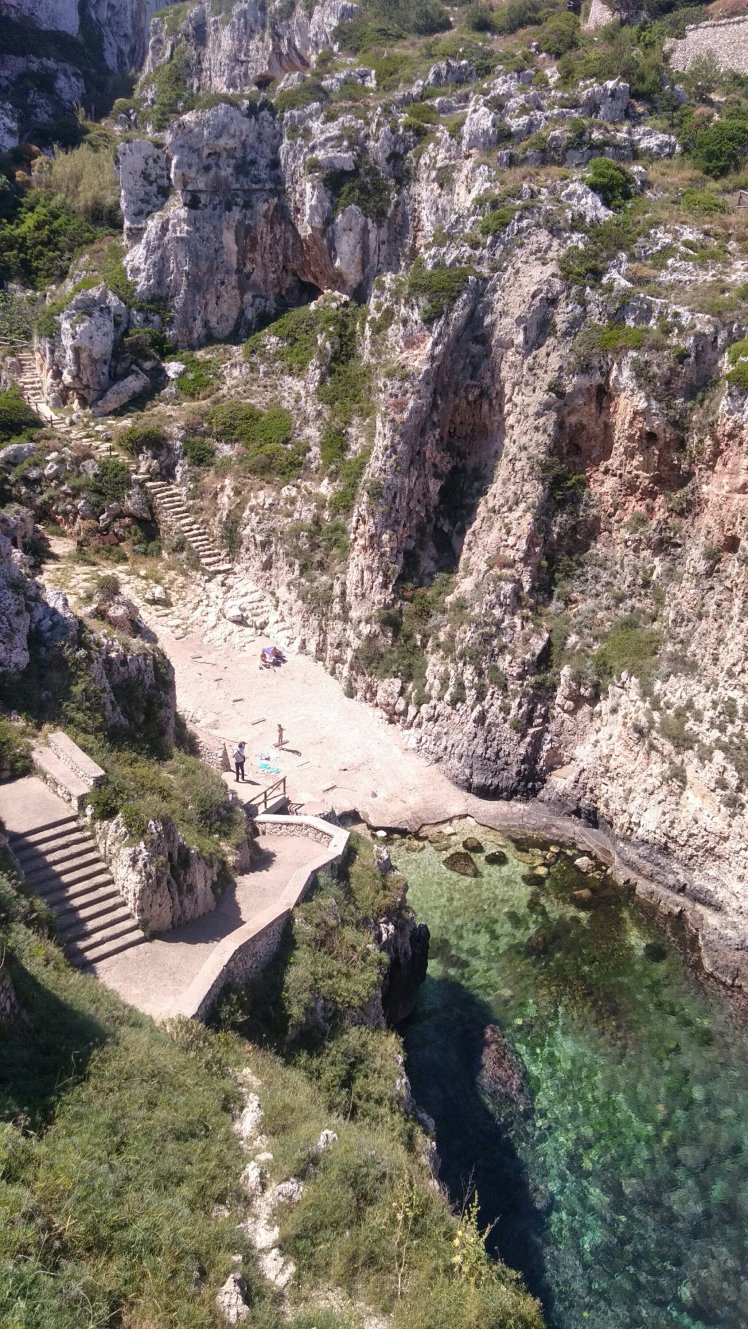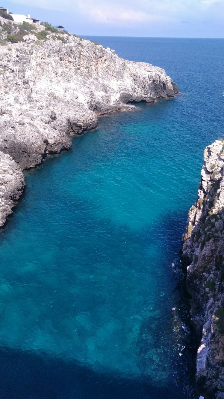 Ezután tovább dél felé a parti úton, nagyon szép sziklás. Leuca felé tartunk, ami a csizma sarkának a csücske. Útközben 1-2 fotó erejéig megálltunk.