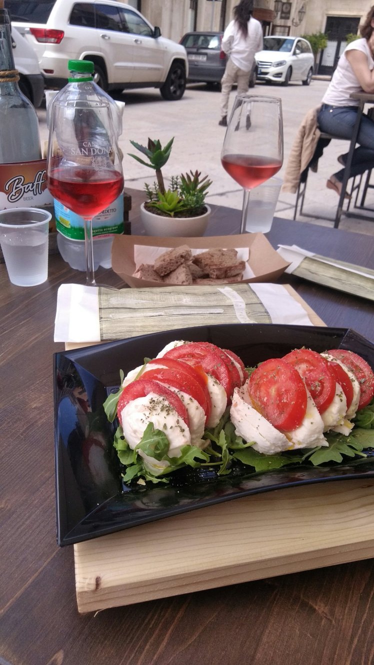 Még egy kis séta, a Duomo éppen felújítás alatt, úgyhogy itt az idô az ebédhez. A helyi szendvicset, pucchia a neve, esszük. Meg egy kis rozé bor.