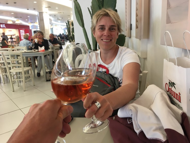 Flughafen Bari: Auto retour, eingecheckt, noch ein Wein