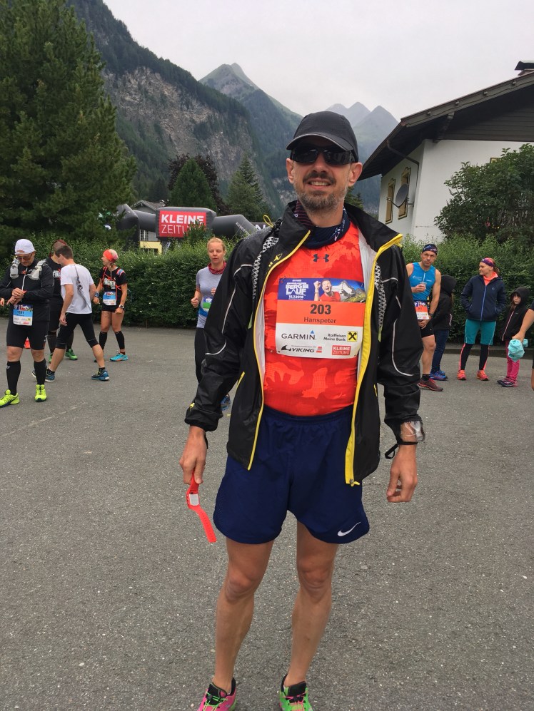 Frühstück erledigt. Es nieselt leicht, bedeckter Himmel. Das heißt es wird nicht heiß sondern eher relativ kalt auf 2500m. Bin wie immer etwas angespannt, aber das legt sich sobald man läuft. Zwei Ziele: schneller als letztes Jahr und besser noch Top100, dann gehört man zu den Glockner Heroes und startet im nächsten Jahr gemeinsam mit der Elite.