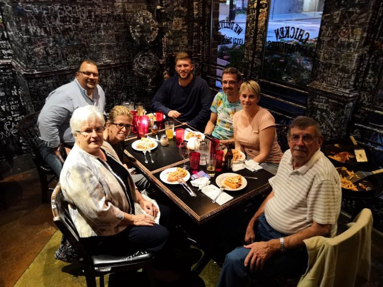 Mivel Oskar nagyon éhes volt, ennie kellett egy burgert 😊 utána Martina, Bill és Spencer is csatlakoztak hozzánk, deep dish pizza-t mentünk enni, ez tipikus Chicago. Nagyon kellemes emberek, jót beszélgettünk. Jönnek jövőre Európába, Hans ajánlotta nekik Bordeaux-t, talán mi is csatlakozunk.