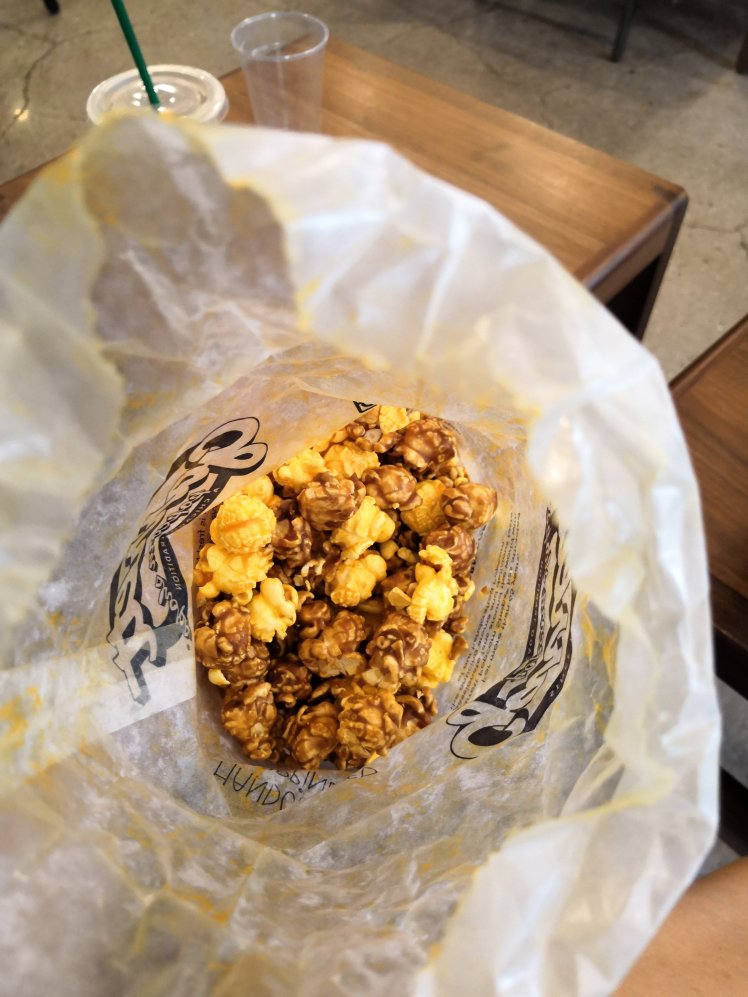Utána egy újabb Chicago specialitást, Garrett popcornt kellett kipróbálni a család ajánlására karamell és sajt mix. Nem rossz 😊