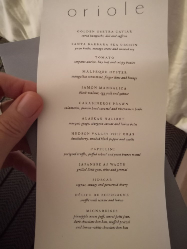 Vacsorázni az Oriole-ban fogunk. Hmmm már összefut a nyál a számban…