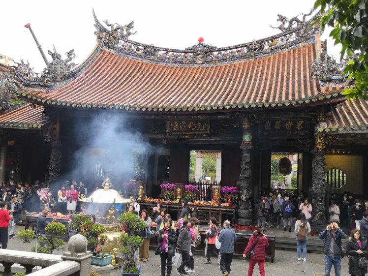 Weiter zum Longshan Tempel wo viel geopfert wird (Kekse, Obst etc) und gebetet wird und möglicherweise auch etwas gespielt wird (Bingo!?). Wir wissen es (noch) nicht.