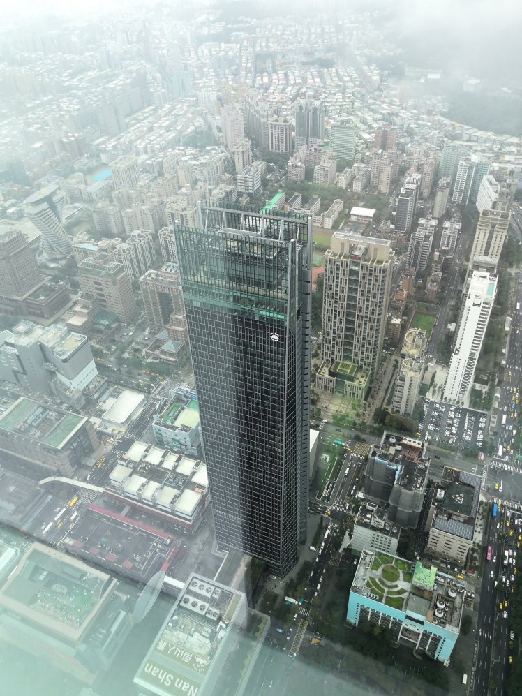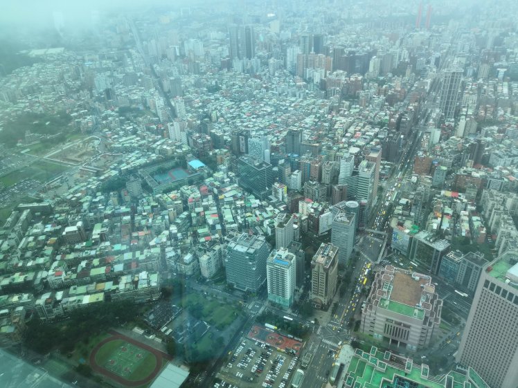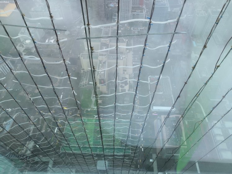 Die 380m hat der Lift in 40 Sekunden erledigt. Aussicht ist etwas getrübt durch die Wolken, aber trotzdem OK.