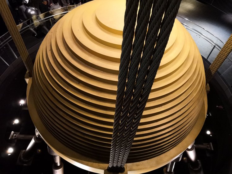 Damit es beim Taifun und Erdbeben stehen bleibt gibt es diesen ca. 700 Tonnen schweren Dämpfer.