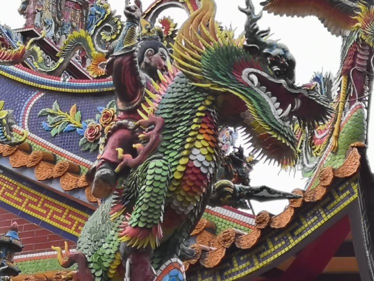Auf den Tempeln hier sind am Dach reichlich Figuren zu finden. Einige davon schauen wirklich toll aus, wie ihr oben erkennen könnt. Jetzt gibt es Bier bei uns auf der Mini-Terrasse.