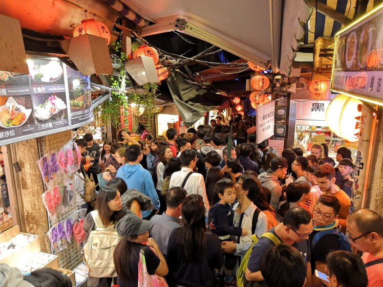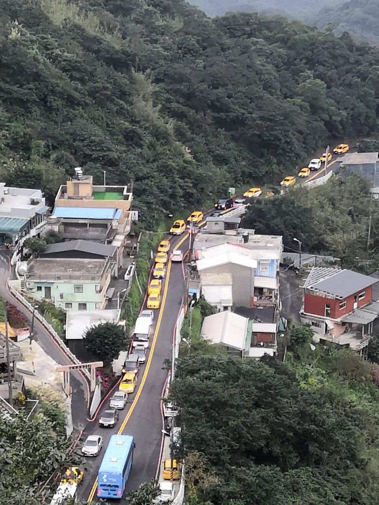 Es ist 16:30 und nach wie vor kommen Massen an Menschen in das Dorf. Entweder mit Reisebussen oder Taxi vom Bahnhof in Ruifang. Eine echte Verkehrslawine.
