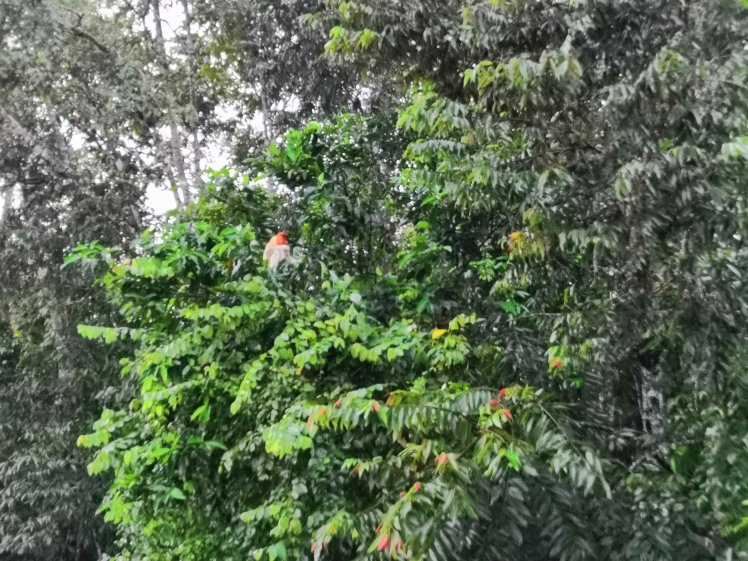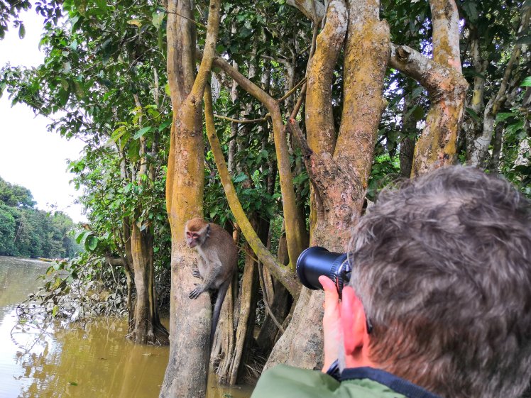 6-kor hajótúra. Az elején még jo idő volt de aztán jött megint az eső és nem is kevés. Láttunk azért jó pár majmot (proboscis, silverleaf, long tailed macaque) madarakat (sas, hornbill). Most reggelinél már nem esik. Következő napirendi pont egy nature walk, addigra talán megszáradnak az esőkabátok, – nadrágok. Két órájuk van.