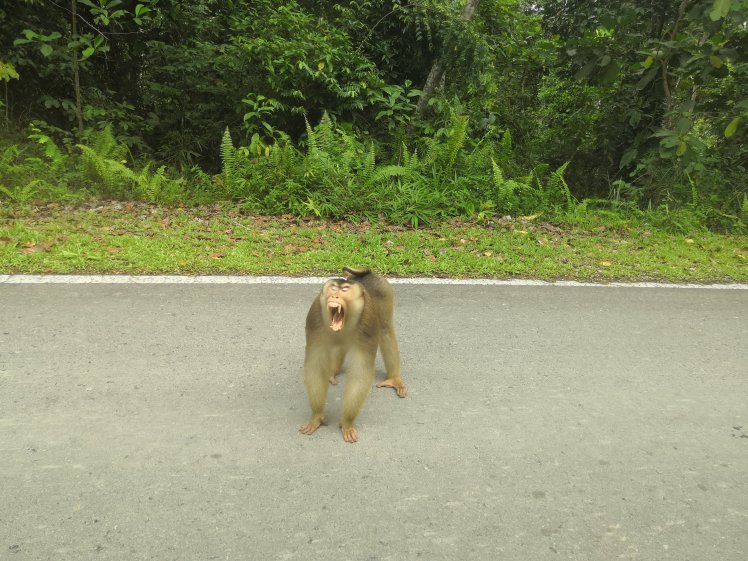 Első találkozó az odaúton egy short tailed macaque.