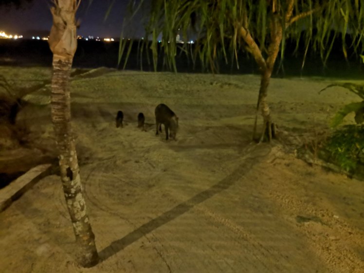 Auch hier gibt es Wildlife. Am Strand ein Bearded Pig mit 2 Jungen.
