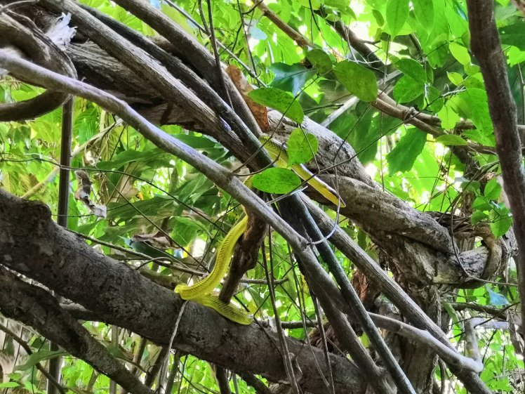 A séta érdekes volt, a házak felett az erdőben nevünk egy órát. Láttunk pár gyíkot (egy repülőt meg egy nagyobbat), két kígyót, egy fél pókot (valami madár már megkóstolhatta, de úgy látszik nem ízlett…), egy hatalmas, nagy lepke-méretű molylepkét és csirke szerű madarat (philippine megapode). Ja meg egy hornbillt. Szóval egész jó felhozatal volt.