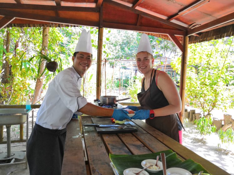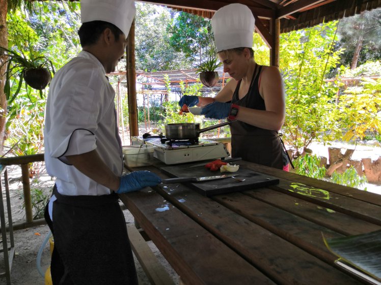 Utána egy gyors csobbanás a medencében, mert aztán nekem meg főzőlecke volt. Ebből Hans is meg tudott ebédelni. Egyedül voltam.