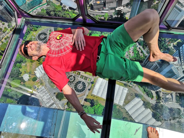 Ráérős reggeli, majd a dög melegben gyalog el a KL Tower-hez. Itt 300m-ről lehet nézegetni lefele.