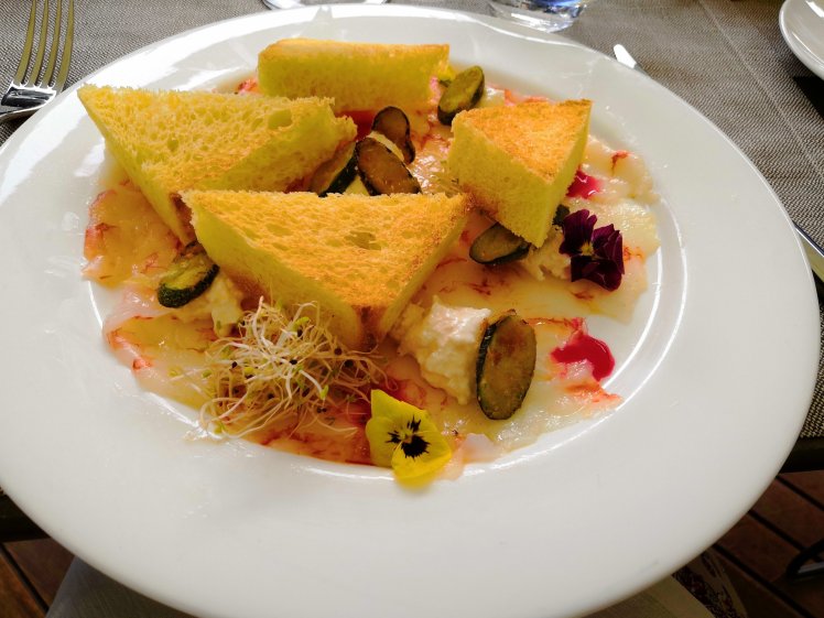 Heiß wars. Daher am Rückweg noch kurz zur Abkühlung in den See und dann etwas rasten. Hans noch ins Fitnessstudio (Orsi arbeitet weiter an italienisch Kenntnissen) und dann Pre Dinner Drinks und jetzt sind wir schon beim Abendessen.