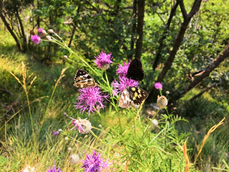 Von Pregasina aus sind wir ca 600 Hm bis zum Passo Rocchetta auf 1159m. Hier machen wir jetzt Pause bevor es wieder zurück geht. Durch die Hitze dampft der See enorm und die Sicht ist daher nicht so fantastisch aber trotzdem toll und lohnend.