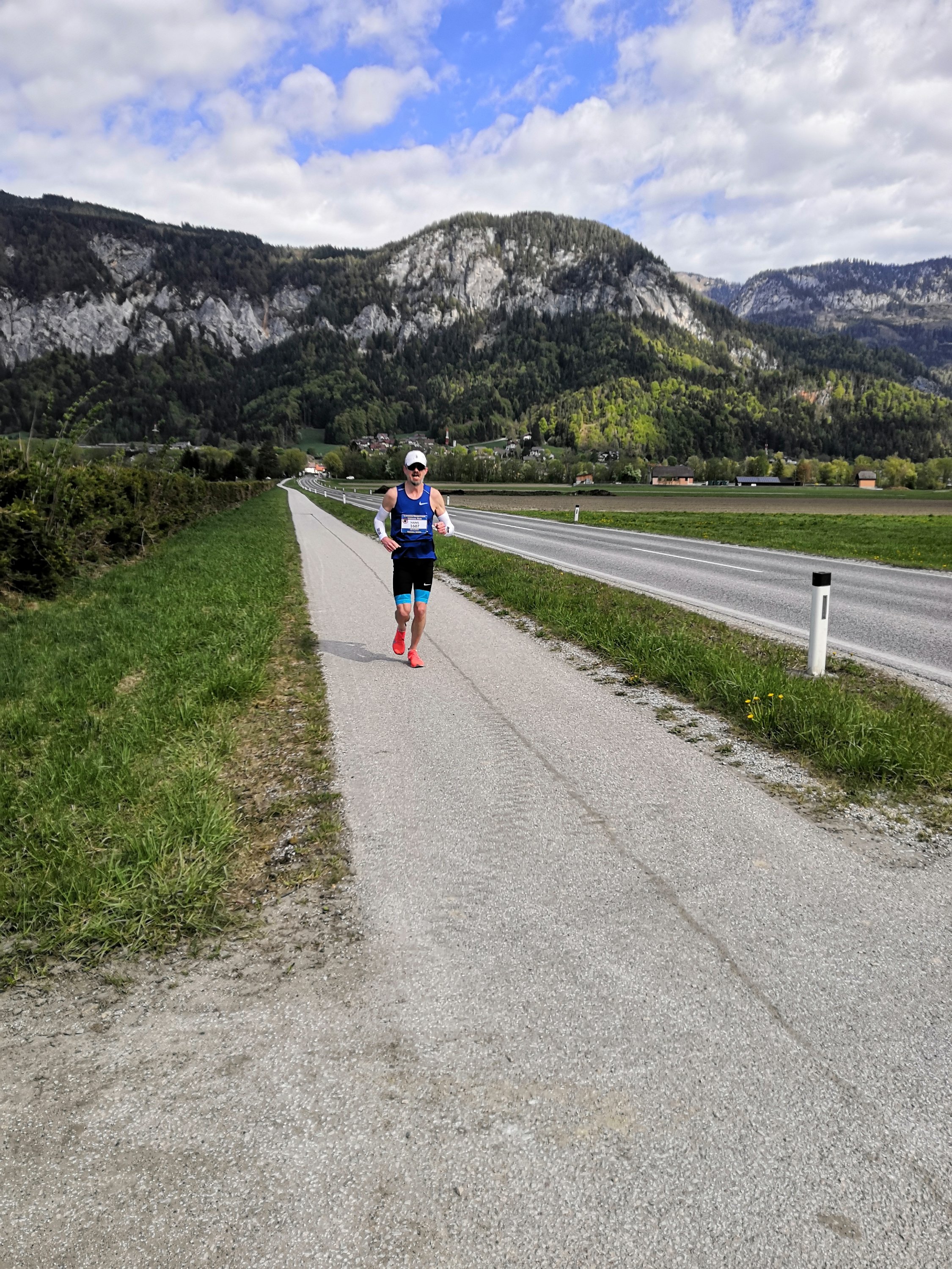 Es ist so weit. Virtuell wird gelaufen, hat Vor- und (mehr) Nachteile als bei einer großen Veranstaltung. Das ewig lange Warten im Startbereich fällg weg und auch das enorme Gedränge auf den ersten Kilometern. Außerdem werde ich optimal versorgt mit Energie, da Orsi am Rad mitfährt und ich genau zum richtigen Zeitpunkt Nahrung aufnehmen kann. Aber die Stimmung von Millionen am Straßenrand und die vielen Mitläufer werden halt fehlen.
