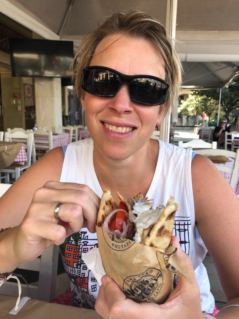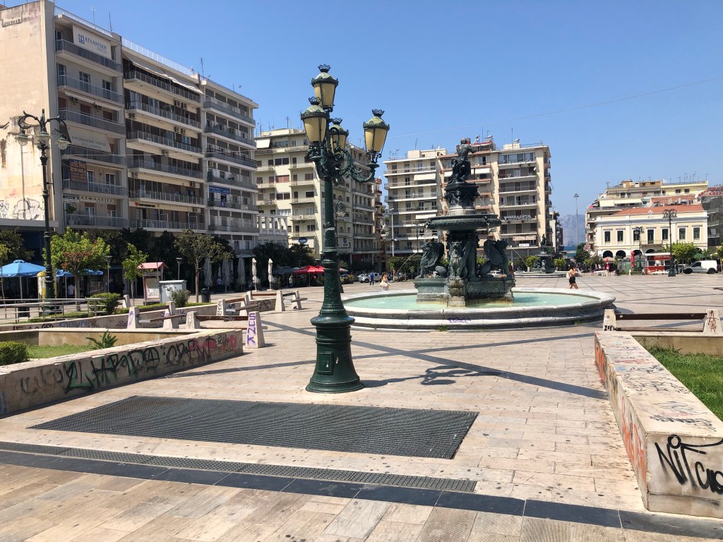 Ein etwas mühsamer 19km Lauf in einem viel zu kleinen Ort dann Aufbruch zum Peloponnes. Sind gerade in Patras angekommen und trinken mal was.