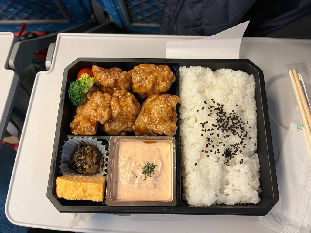 Die Fahrt mit dem Zug war sehr kurz (30 Minuten) weil sehr schnell (210 km/h). Daher mussten wir auch zügig unser Mittagessen verzehren.