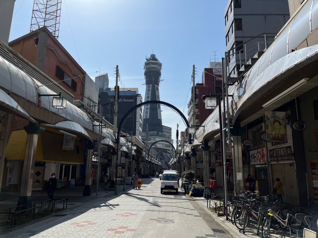 Zuerst geht es mal zum Tsutenkaku einem Aussichtsturm. Muss in jeder Stadt sein.
